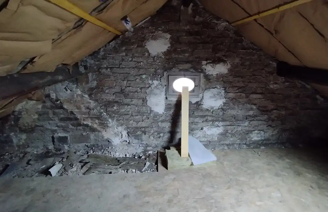 Le volume sous combles offrait une belle surface exploitable, mais plusieurs contraintes limitaient son usage : hauteur variable, poteaux porteurs, réseaux apparents et absence d’organisation claire des espaces.
